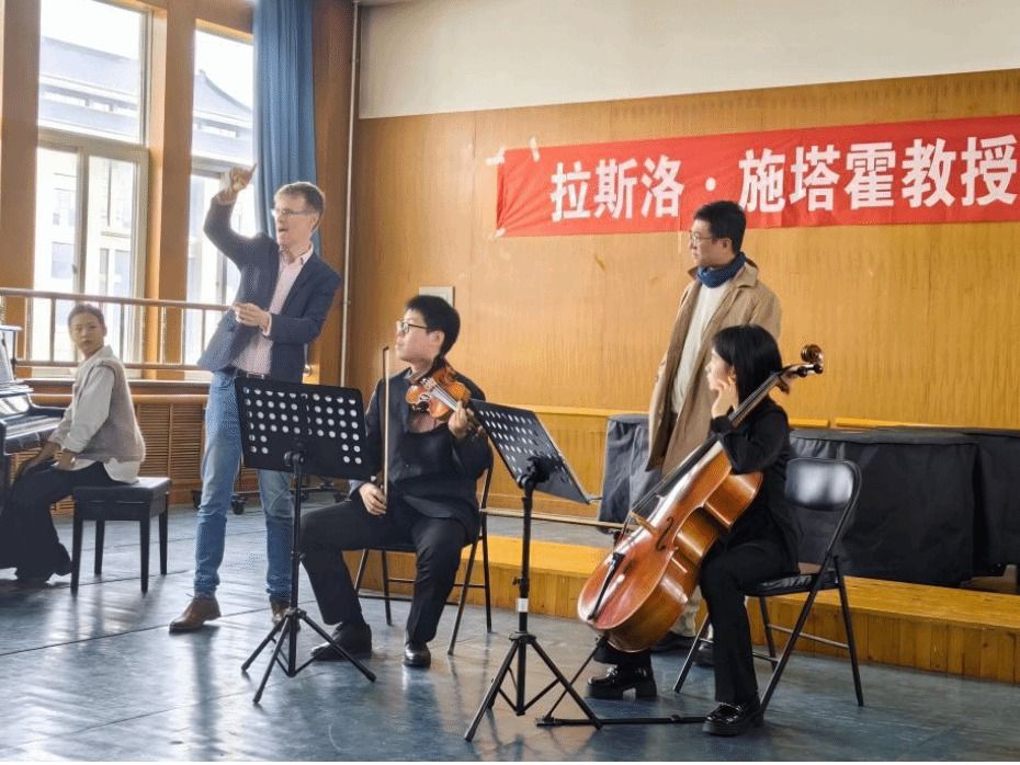 11月2日上午,“演奏者的终极注意力训练——拉斯洛·施塔霍室内乐工作坊”在我院成功举办。本次工作坊由副院长张娟教授主持,上海音乐学院音乐学系教授、博士研究生导师、音乐分析教研室主任邹彦教授担任翻译。