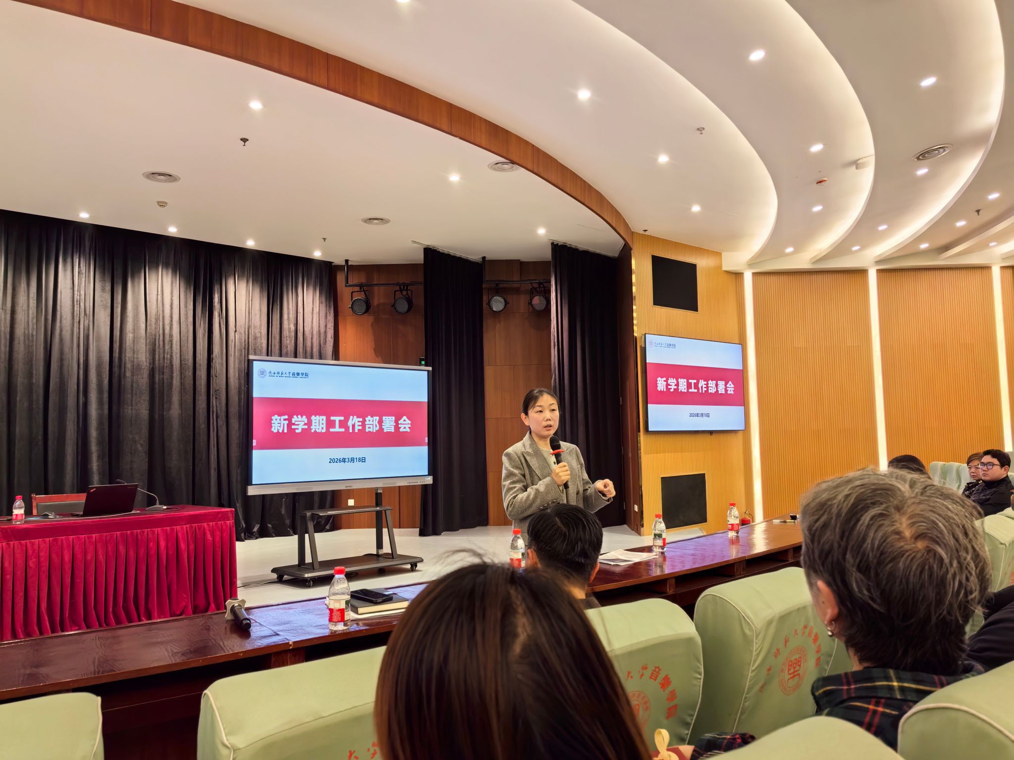 3月18日下午,音乐学院本科生班主任工作交流会在六艺楼报告厅举行。学院党委书记范玮熠、党委副书记、纪委书记宋娜、全体本科生班主任、各年级辅导员参会,会议由宋娜主持。