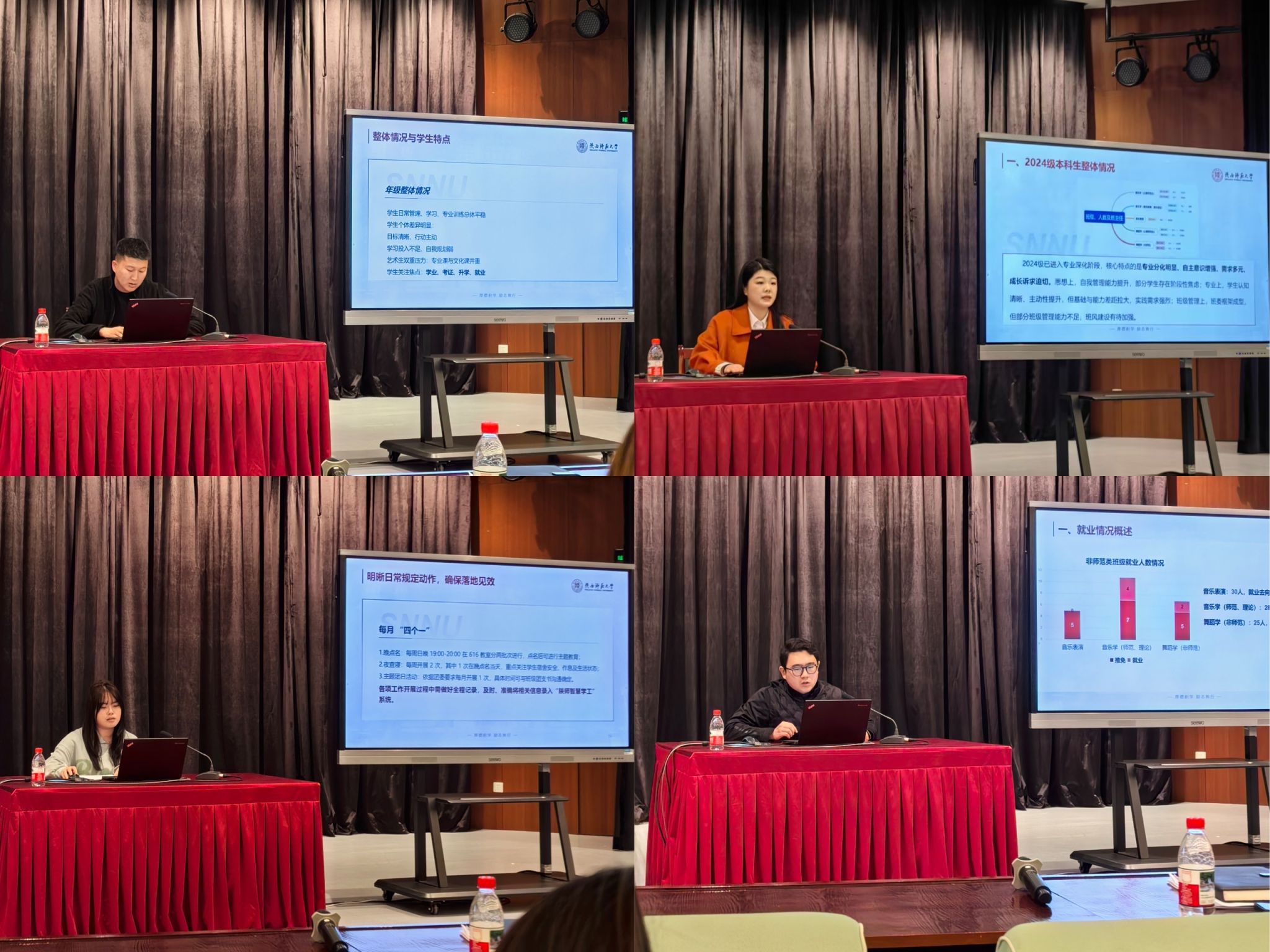 最后,范玮熠书记作总结讲话,肯定全体班主任的辛勤付出,针对下一步工作,提出三点要求:一是强化协同联动,精准对接学生需求,筑牢安全防线;二是坚守育人初心,结合音乐与舞蹈专业特色,开展相关活动;三是压实育人责任,主动走近学生,在专业学习、职业规划等方面提供指导。